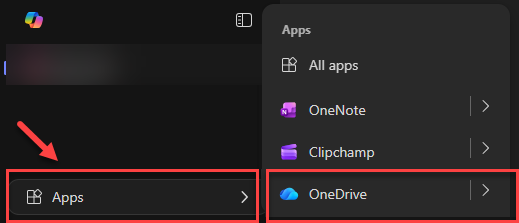 On the left navigation menu, select the Apps button, then select OneDrive.
